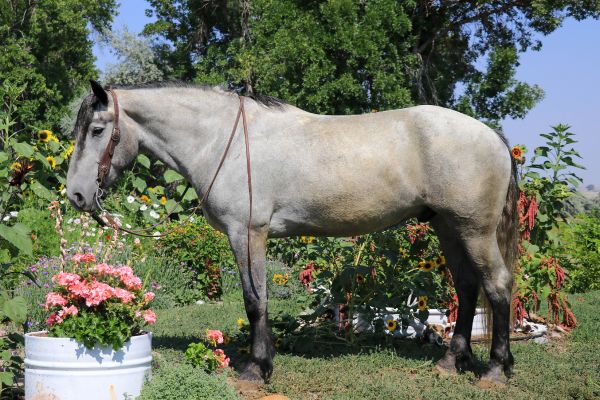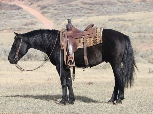 Betty is a 1/4 draft black mare. She is a nice using horse to do anything you need to do. She has been roped off and pushed the cows on the mountain. She has been hunted off and packed out deer and elk out. She knows how to open gates...More