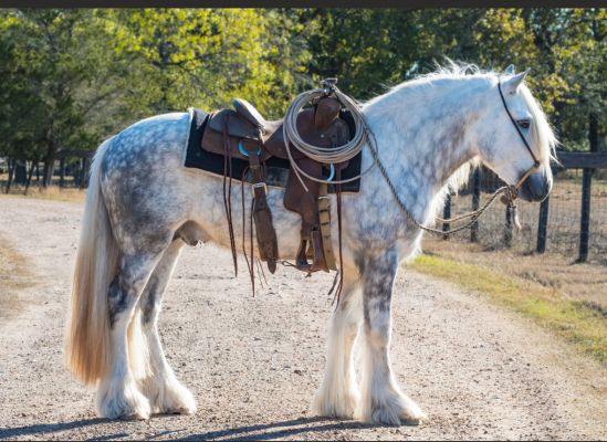 Casper is a 2023 registered Grey Gypsy Vanner Gelding. Very well bred and raised by Riverstone Ranch, a very reputable breeder. Lopes around smoothly. Trailers well, stands for the farrier, doesn't mind clippers. Started well and has a solid foundation. Savvy to a rope and stout enough to drag to...More