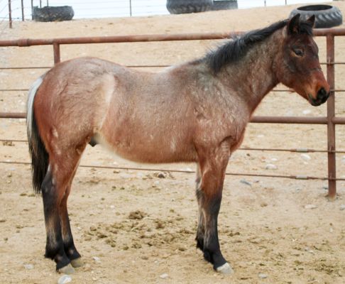 This is a Cowboy's Dream, he is a yearling bay roan stud by our half Brabant and half Quarterhorse Stallion we call Newt who's Dam is an own daughter of John Scott's great Registered Quarterhorse Stallion Doc O' Dynamite. His Mother, a registered Quarterhorse, Shesa French Girl, is an own...More