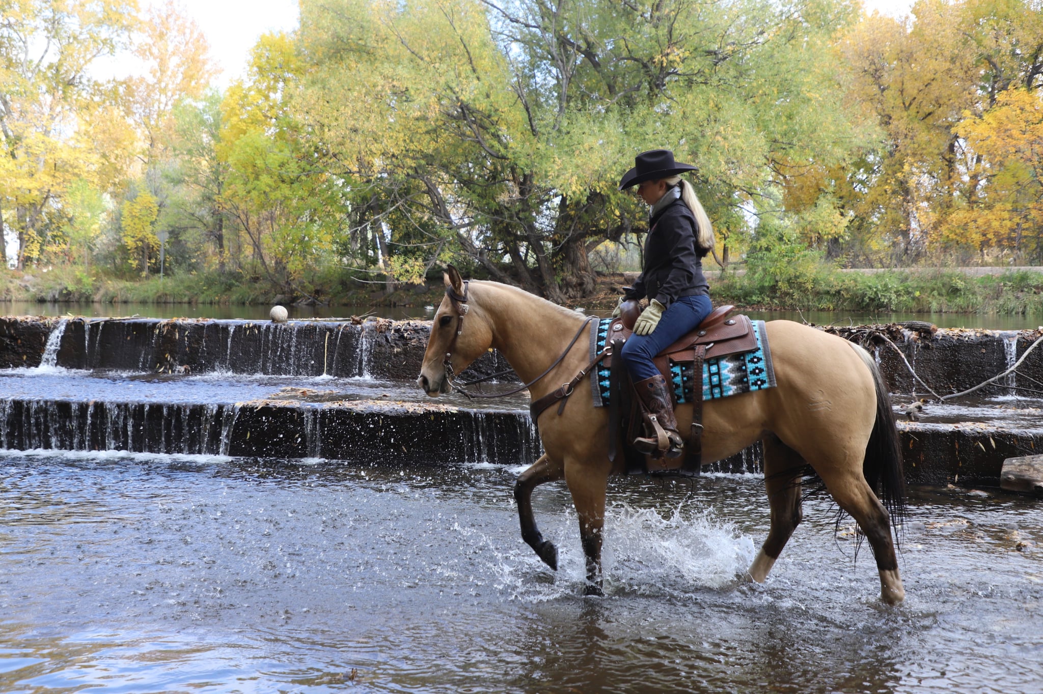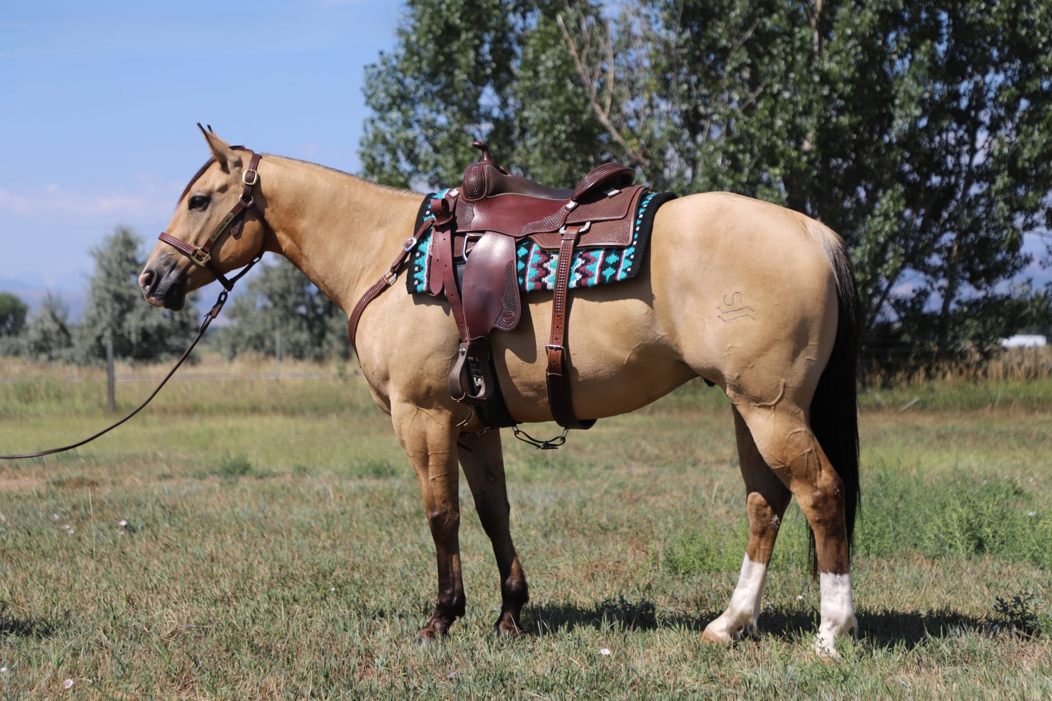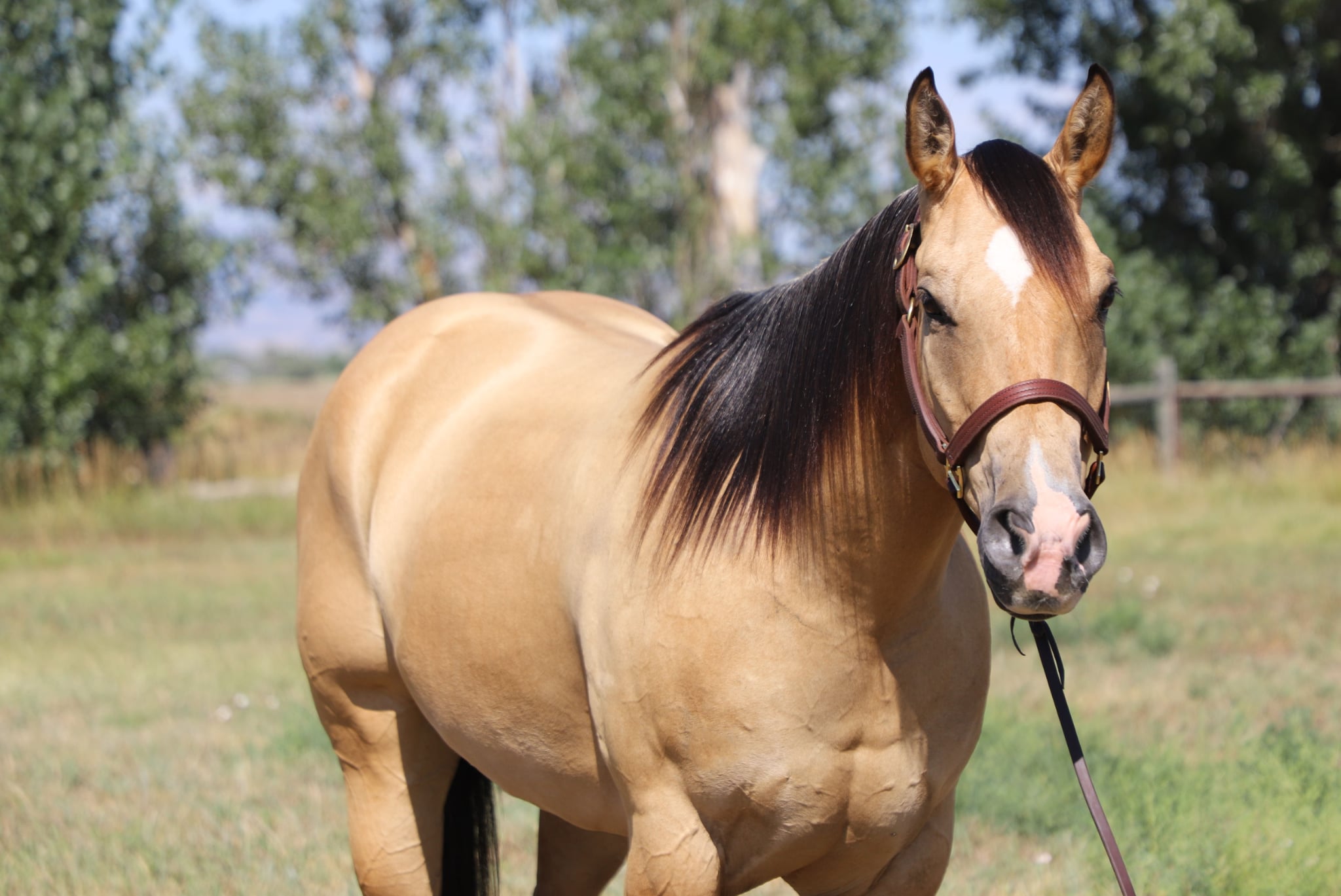 Dude Hes Legendary is the perfect name for this stunning gelding. Affectionally known as Bucket around the barn, he sure is a head turner! Standing at a stout 15.1 hands, weighing 1,200 pounds, and wearing a size 1 shoe, Bucket is built to last! And he has the steady attitude to match! Bucket has been a true pleasure to bring along. This horse is eager to greet you in the field, comes over to rest his big chin on your shoulder, and is delighted when he's the chosen one you catch and halter. He sure loves his people! Bucket is one of the most trusting horses I've had in my program. Ask him to stand in a ring of fire, he'll do it. Want him to drag a sled full of your favorite people or carry a tarp blowing in the breeze, it's all the same to Bucket. He has been used in my lesson program and always stays quiet and kind. Bucket has a comfortable trot and rocking horse lope. He maintains a consistent pace at the gait his rider sets. Out on the trails, Bucket will make friends with anyone that walks or bikes by. He will cross any bridge and go into any body of water to grab a quick drink. He’s been around bikes, baby strollers, skateboards and everything in-between. He isn’t fazed to ride beside busy traffic with semis, horns honking, and cars passing quickly in both directions. Big machinery, cars, and leaf blowers are all daily encounters for this guy. Bucket has led a pack string up in big mountain country and knows what a long day's work is. In the arena, Bucket has a fancy handle! This big guy can turn around over his hocks and come to a sliding stop. He lopes off from the walk, knows his leads, and neck reins with the best of them! He has a cute side pass and knows how to pivot on both his front and hind. He moves well off leg pressure or rein pressure. He has been hauled to reining shows where he settles right in and contentedly naps most of the time he's there. Bucket will stand tied on a high line, between crossties, or tied to the trailer all day long. And if you don't have a place to tie, he's content to just stand ground tied. Bucket loads in any trailer and back out like a gentleman. Slant with dividers or stock trailer with unfamiliar horses bumping up against him doesn't bother Bucket in the slightest, and by the end of the ride, he’s happy he has new friends. He gets along in any herd setting whether he's simply stalled by neighbors or turned out in pasture. Bucket stands tied to get hot shod by the farrier, is easy to worm and clip, and is great for the vet; he is currently up to date on his teeth and vaccines. If you want to stroll around the arena or go out and rope a calf that needs brought in, Bucket is your man. His gentle, kind demeanor and quiet attitude around kids makes him a great candidate as a family horse as well. His confidence and trust are truly unmatched. Bucket is great to handle on the ground or while in the saddle. This gelding has done a bit of everything since he's been with me, and he takes it all in his pleasurable stride! Bucket is an honest guy who puts thought into what he's asked, he's always a team player. He's by far a barn favorite! Contact Hug Performance Horses LLC 570-665-1301 for more information.